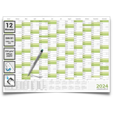 Abwischbarer Wandkalender 2024 Jahresplaner grün Format: 100x70cm –